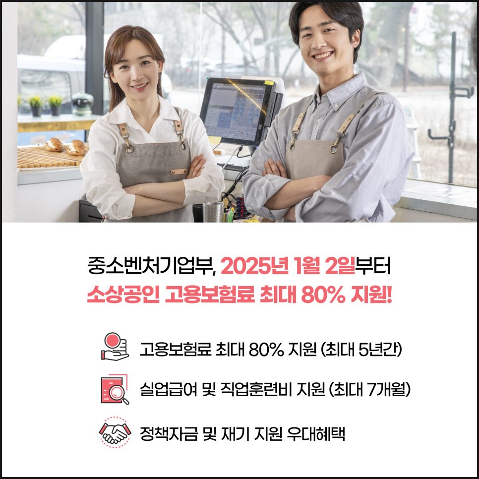 중소벤처기업부, 2025년 1월 2일부터 소상공인 고용보험료 최대 80% 지원!