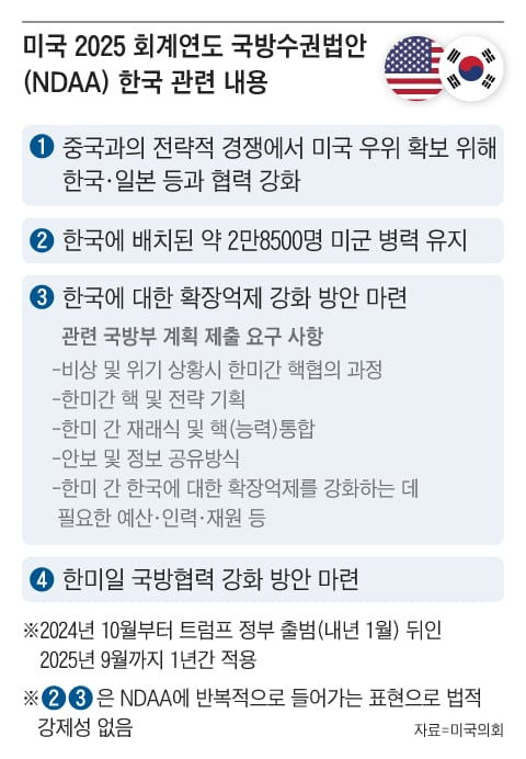 NDAA는 미국의 국방 예산과 관련된 법안으로, 매년 의회에서 통과되죠. 이번 법안에서는 주한미군의 유지뿐만 아니라, 한국과 일본과의 협력을 강화하여 미국의 전략적 우위를 유지하는 방안이 포함되어 있어요.