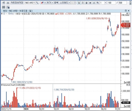 브로드컴 주가 일봉 차트:인포맥스 제공