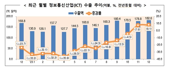 ICT(정보통신기술) 산업의 수출이 특히 두드러진 성과를 보였어요. 12월의 수출은 전년 대비 큰 폭으로 증가했으며, 이는 글로벌 시장에서의 수요 증가와 관련이 깊어요.