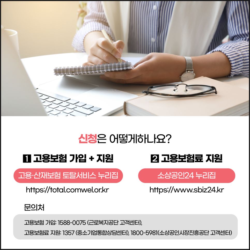- 고용보험료 지원: ☎1357(중소기업통합상담센터), 1800-5981(소상공인시장진흥공단 고객센터)