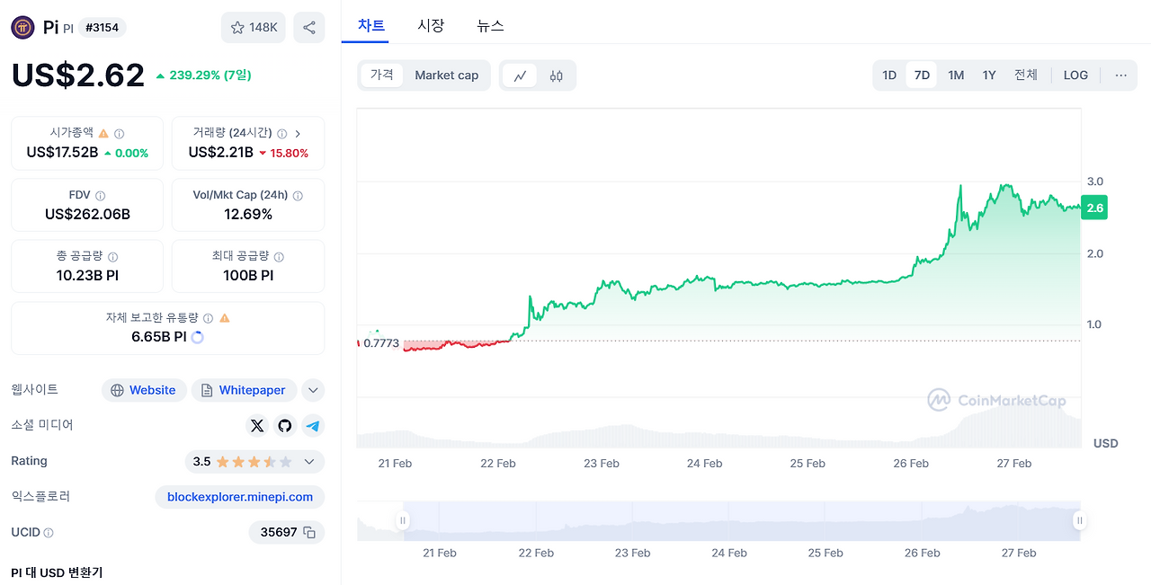 현재 파인코인의 가격은 $2.62로, 지난 주에 비해 239.29% 상승했어요. 시장에서의 총 시가총액은 175억 달러에 달하며, 24시간 거래량은 22억 달러에 이르고 있어요. 이러한 상승세는 많은 투자자들에게 긍정적인 신호로 작용하고 있죠.
